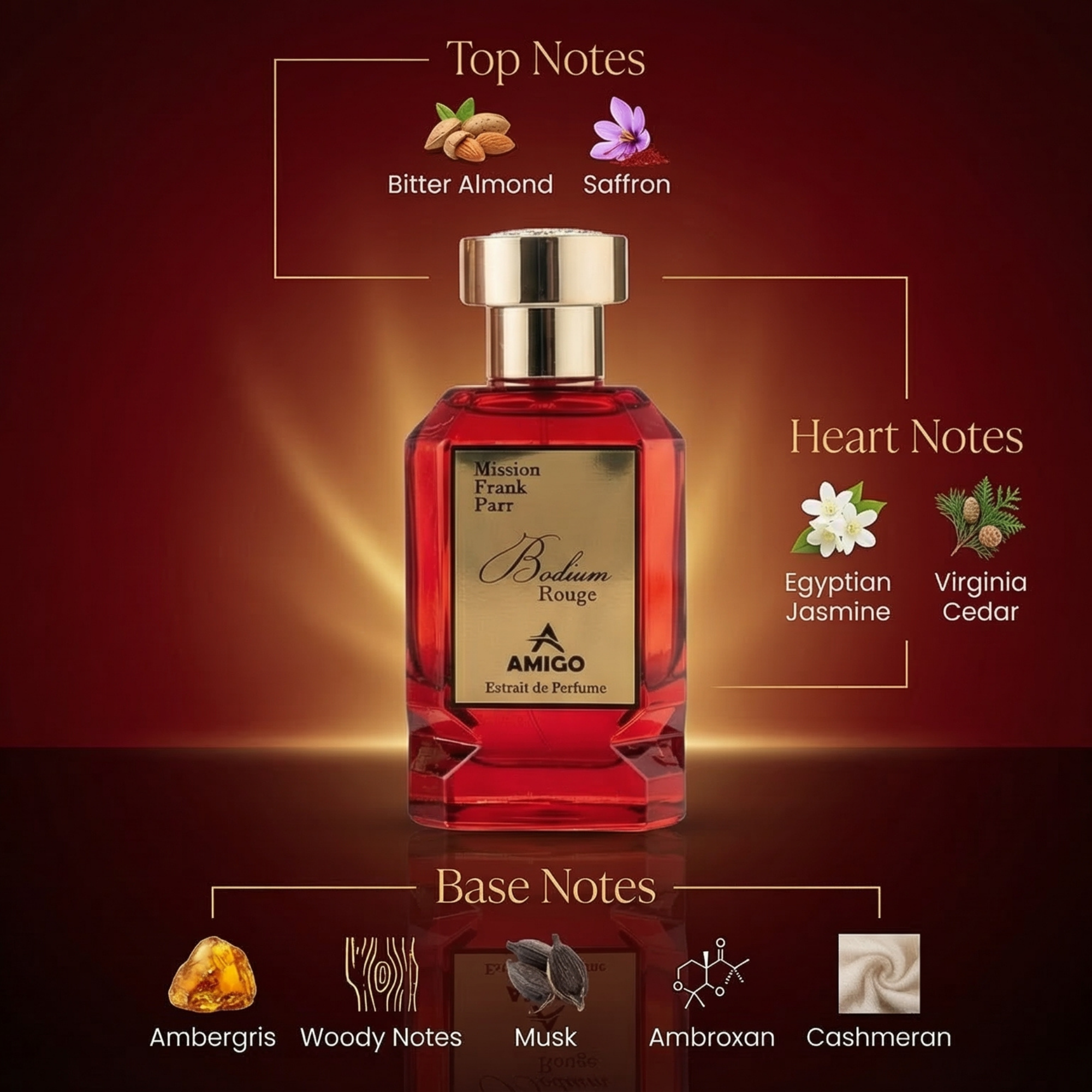 AMIGO Bodium Rouge هو عطر فاخر للجنسين يتميز بتركيبة عنبرية دافئة مع لمسات حلوة ومشرقة تمنح العطر حضورًا مميزًا وجذابًا. عطر أنيق يعكس الفخامة العصرية ويترك أثرًا قويًا يدوم طويلًا.