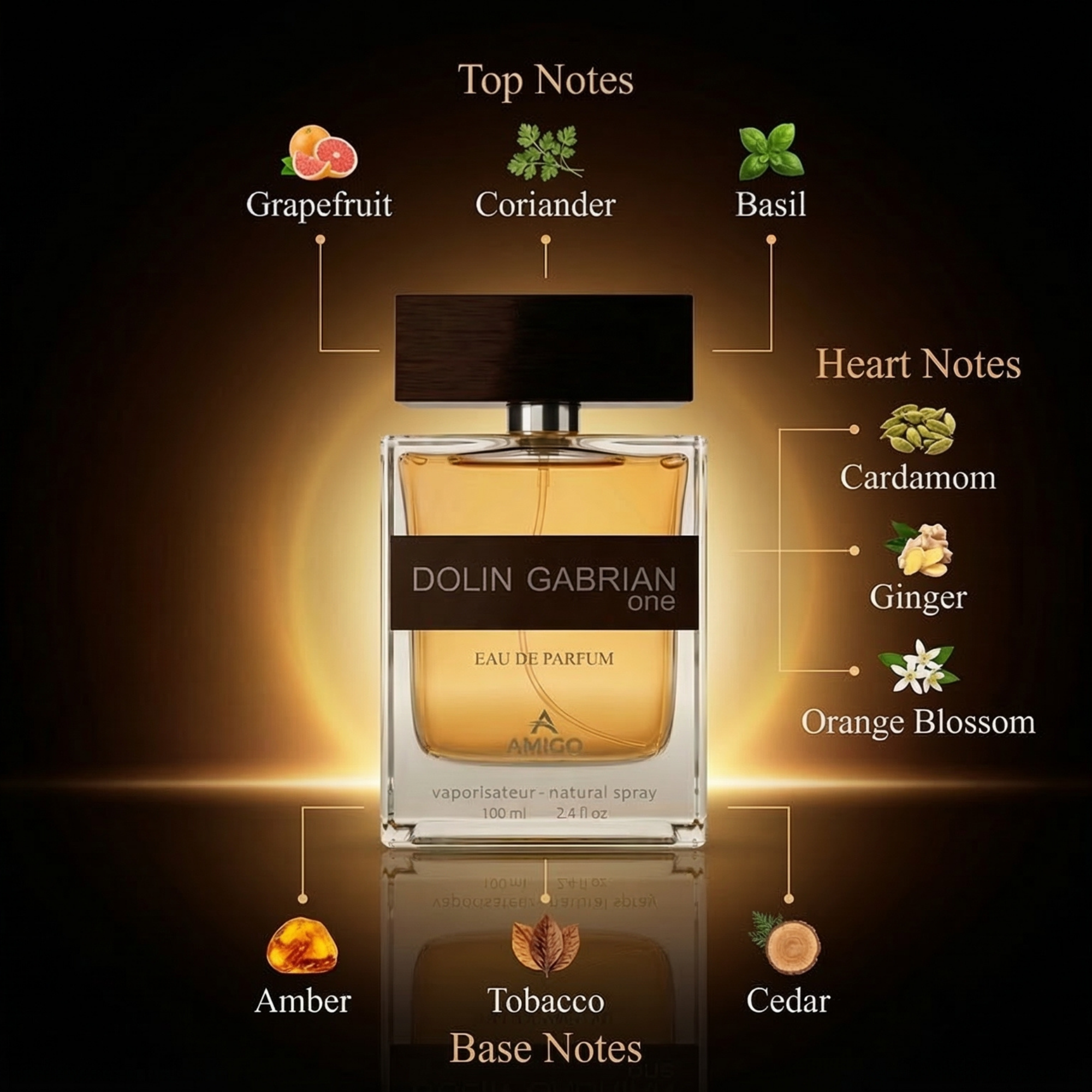 AMIGO Dolin Gabrian One هو عطر رجالي أنيق يجمع بين الدفء والجاذبية في تركيبة عطرية غنية تناسب الرجل الواثق من حضوره. عطر كلاسيكي عصري يتميز بطابع دافئ حسي يجذب الانتباه ويترك انطباعًا راقيًا يدوم طويلًا.