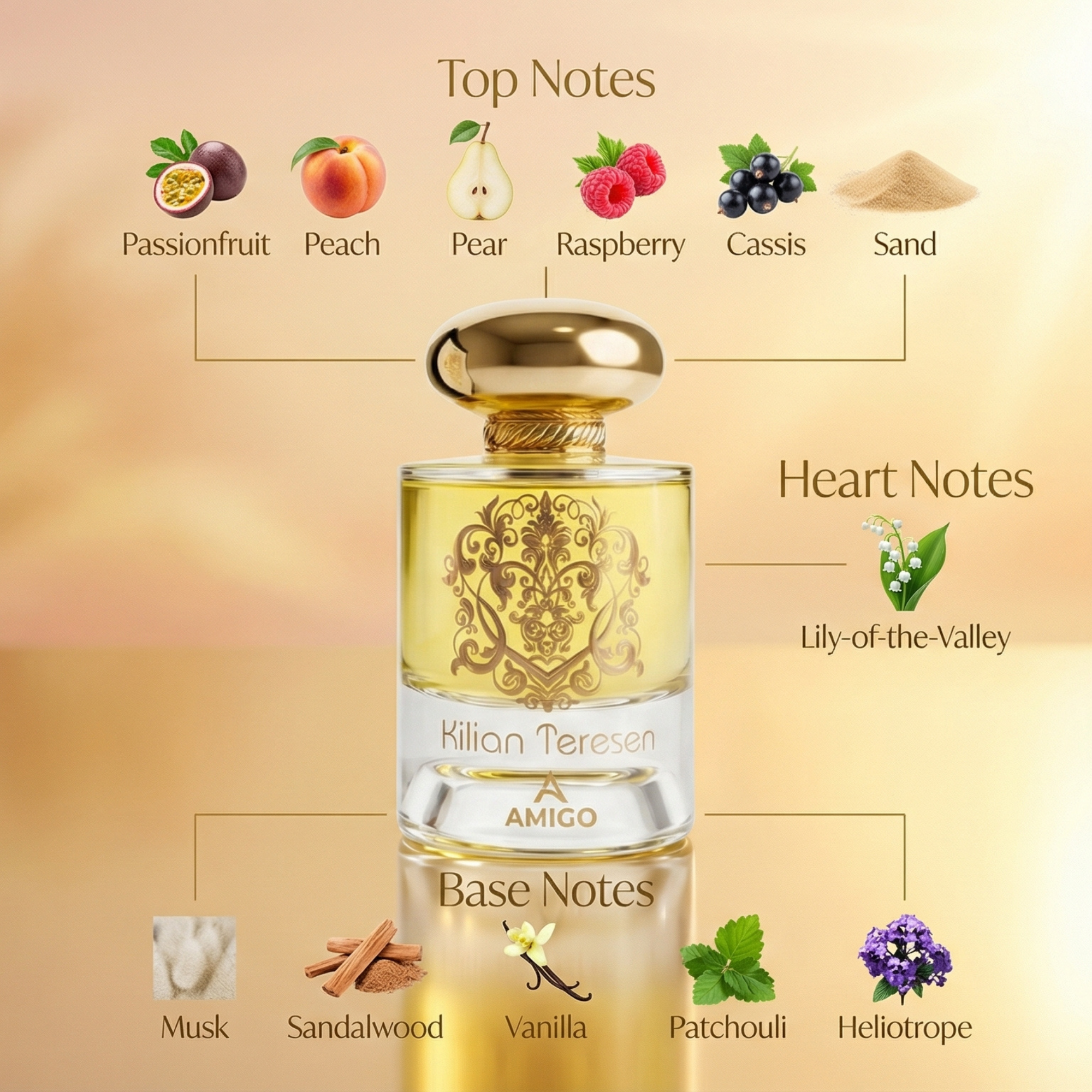 Kilian Teresen من AMIGO هو عطر فاخر للجنسين يجمع بين الفاكهية الغنية والدفء الشرقي في تركيبة جريئة ومميزة. يتميز بطابع جذاب وفخم يمنح حضورًا قويًا ويترك أثرًا لا يُنسى.