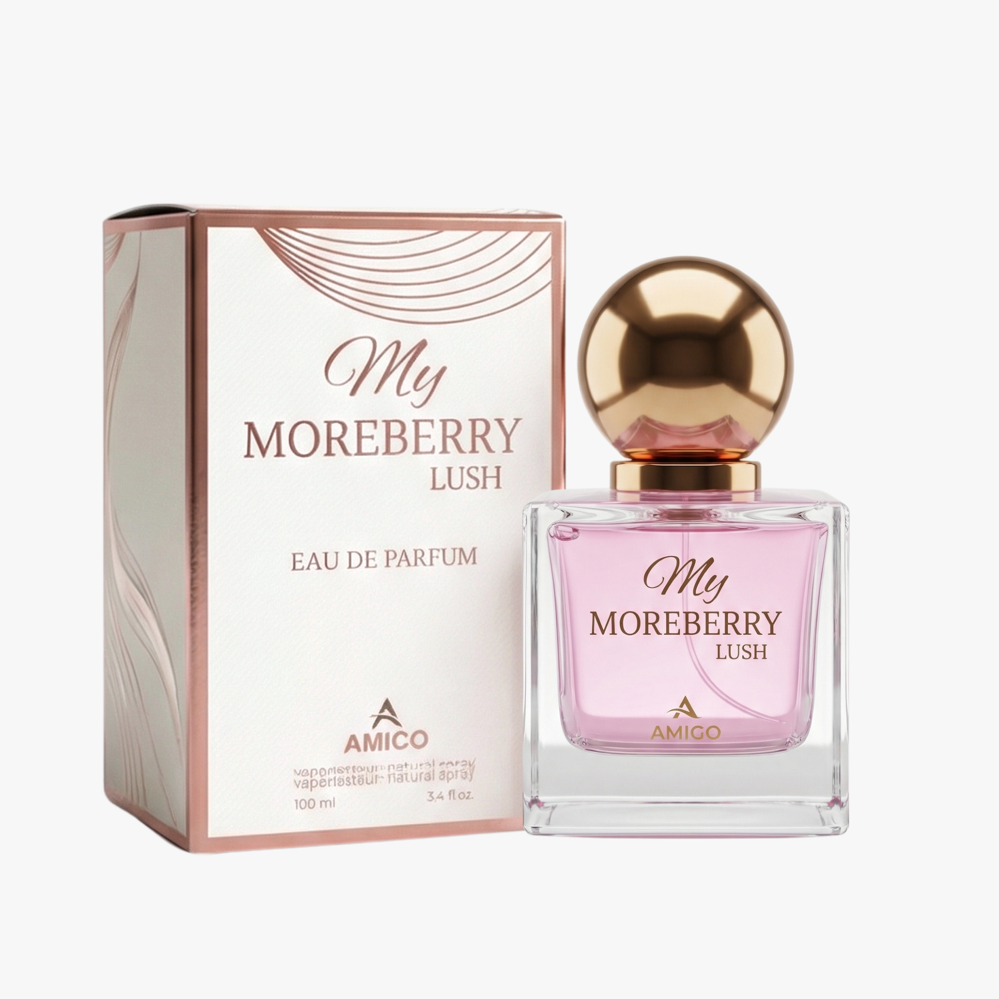 AMIGO My Moreberry Lush هو عطر نسائي أنيق ومشرق يعكس الأنوثة الحيوية في تركيبة زهرية فاكهية ناعمة مستوحاة من حدائق الربيع المليئة بالأزهار المتفتحة. عطر منعش وجذاب يمنحك إحساسًا بالانتعاش والرقي طوال اليوم.