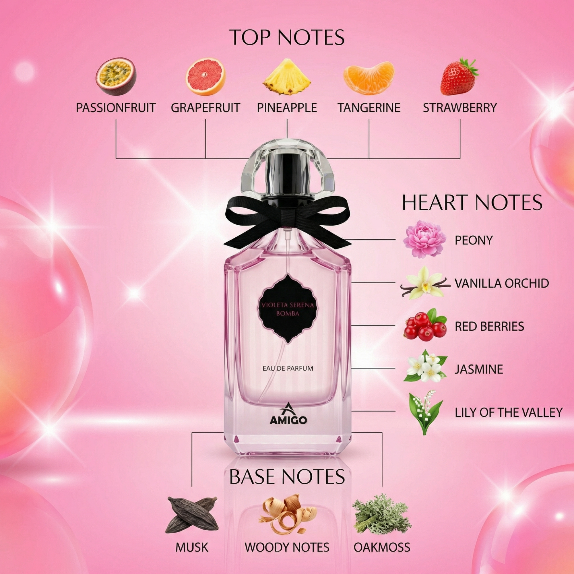 Violeta Serena Bomba من AMIGO هو عطر نسائي أنيق يجمع بين الانتعاش والحيوية مع لمسات أنثوية جذابة. صُمم هذا العطر ليعكس شخصية المرأة العصرية المليئة بالطاقة والثقة.